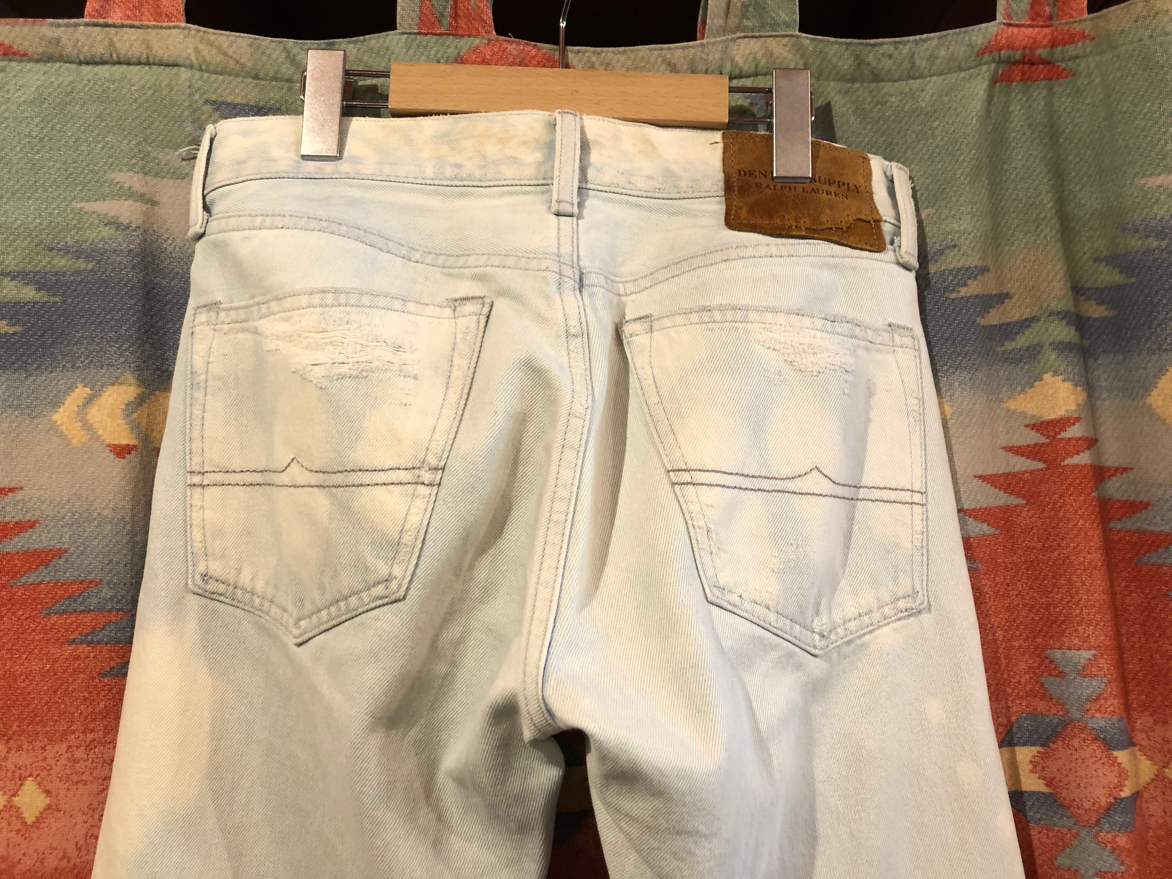 メキシコ製 DENIM&SUPPLY Ralph Lauren デニム&サプライ ラルフローレン クラッシュデニムパンツ W30相当 アイスブルー