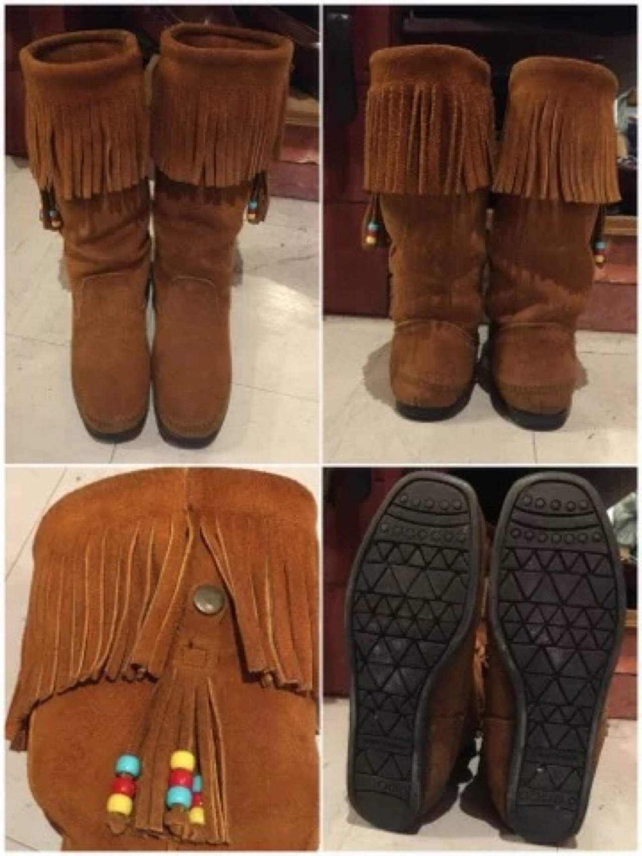 MINNETONKA ミネトンカ スエード フリンジロングブーツ ブラウン US7 / 24cm相当 レディース
